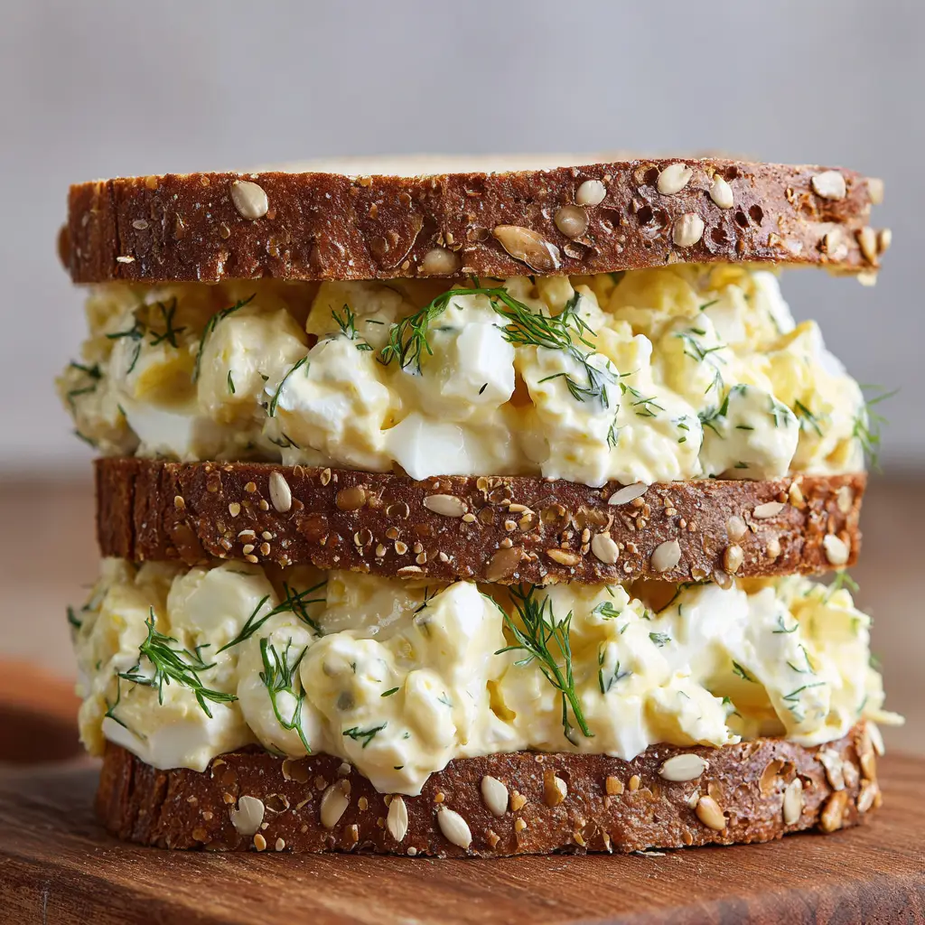 To prevent a soggy sandwich, use a sturdy, thick-cut bread like a rustic seeded whole grain loaf. Additionally, ensure your hard-boiled eggs are patted completely dry before chopping so excess water doesn’t thin out your creamy dressing.