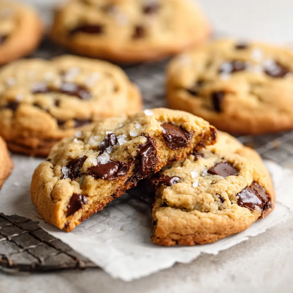 Every element of this recipe has been engineered for maximum flavor and visual appeal without the hassle of complicated techniques. We utilize melted butter for a chewier center and skip the mandatory chill time, making these truly Easy Chocolate Chip Cookies to whip up on a whim. The crowning glory is a light sprinkling of coarse flaky sea salt, which cuts through the richness and beautifully highlights the large, melted semi-sweet chocolate chips stretching slightly as you break a warm cookie in half.