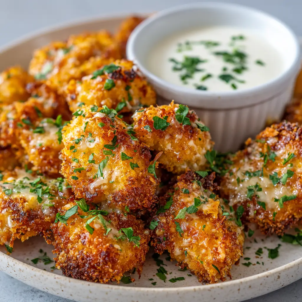 Every single bite is finished by glistening with a rich garlic butter glaze and sprinkled with finely chopped fresh green parsley flakes. Served right alongside a ramekin filled with a creamy white dipping sauce, these chicken bites are guaranteed to disappear fast. Let’s dive into exactly how to master this mouthwatering meal!