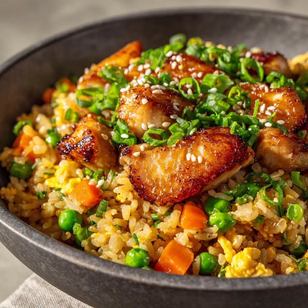 Every bite delivers a symphony of textures, from the fluffy scrambled egg bits to the generous chunks of seared chicken breast sitting on top. This isn’t just a side dish; it is a meticulously crafted culinary experience designed to be the star of your dinner table.